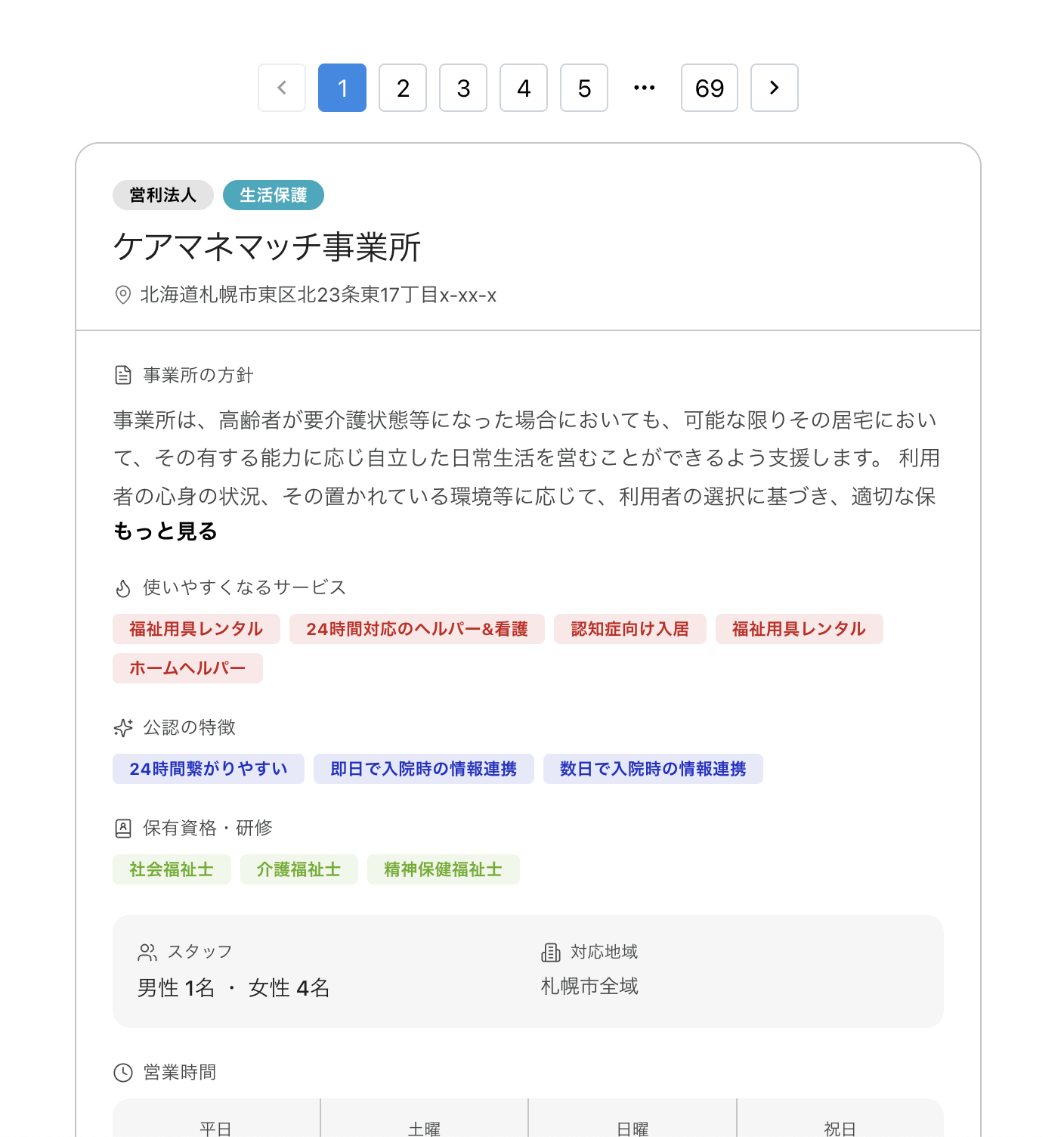 ケアマネマッチでは 「🏥 医療連携に強い事業所」「👩 女性ケアマネジャー」 など、事業所の特徴や得意分野から検索することができます。
